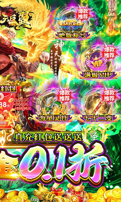 《梵天巨翼(0.1折西游打金服)》全新西游永久0.1折传奇,年度爽服,齐天大圣,称霸沙城,开局领全局透视+满级VIP+刺杀剑术+200W元宝,全新大圣专属系统战甲系统,助力狂虐BOSS,更有神位商店1灵符购买道具;所有地图爆大量充值,小怪掉充散人天堂,无限打金!全角色攻速大提升,开局开砍,暴爽打金!全新优化所有boss爆率,全程掉落高级神器,全面提升打金爽感,这一棒叫你灰飞烟灭!