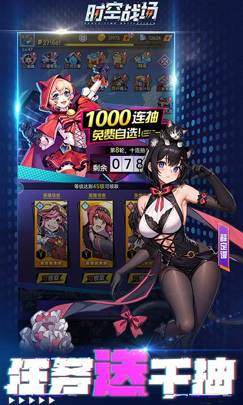 《时空战场》是一款以近未来时代为背景的放置卡牌游戏,0.1折版本重磅来袭,所有充值全部0.1折,商城物价不变无套路!免费送1000连抽,每日登录在线送20连抽,还有5星任选等你来拿!游戏中玩家将扮演未来世界中的Manager,在屡次元种类各异的异能者中招揽、组建、操练自己的异能小队,并在异能都市各个强壮实力所举办的异能者大赛中进行战役,终究赢得属于自己的荣耀与实力!