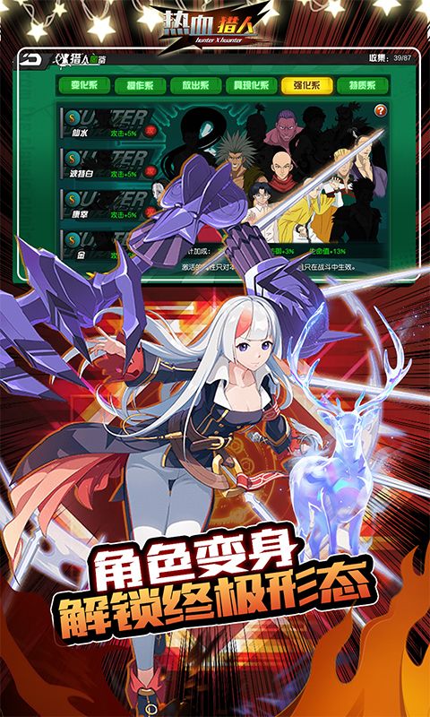 《热血猎人(首续0.1折)》是一款二次元策略卡牌手游,经典角色加上经典招式,百种不同的技能搭配,让您真正体验到卡牌策略游戏的纯粹本质。