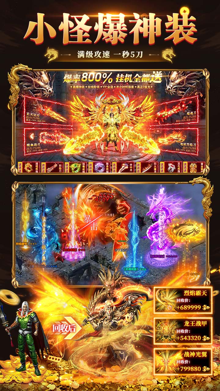 ★超高爆率:所有道具全靠打,全部地图无VIP限制,小怪也能爆神装