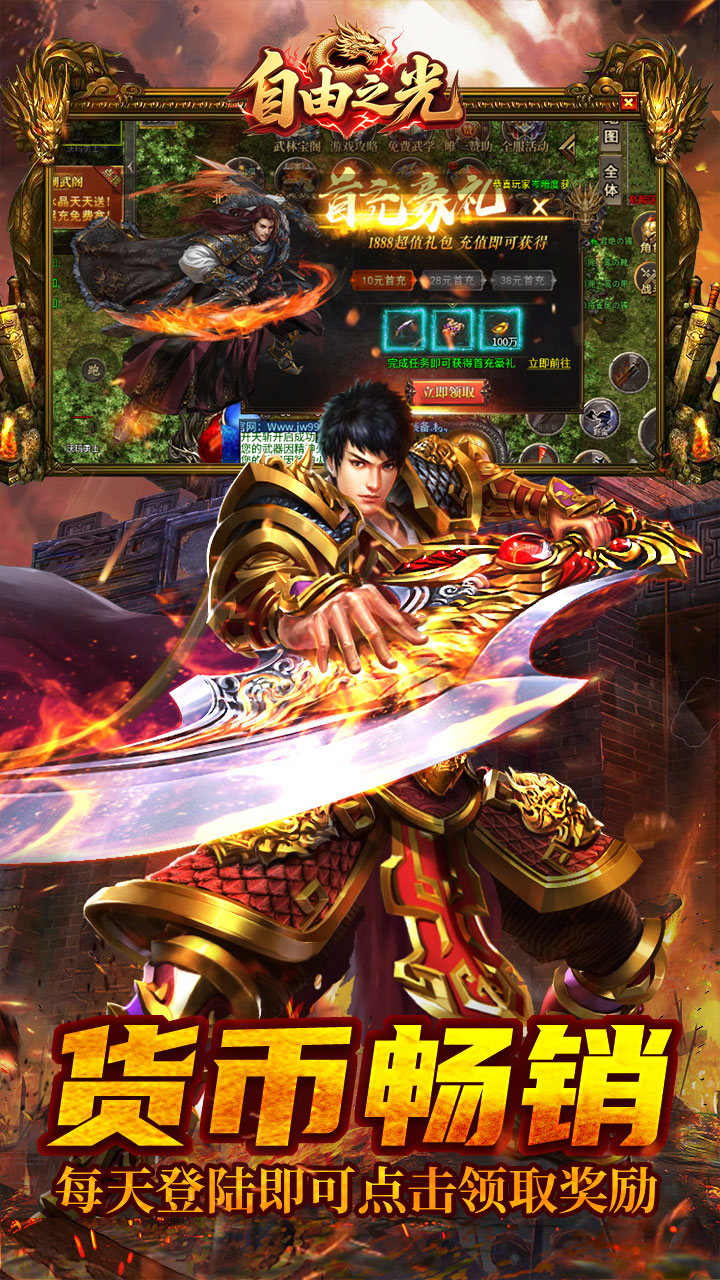 《自由之光》加入我们,体验""游历诸天万界”的剧情,让你在全大陆的冒险中,从一名普通散人成长为主宰世界的开拓者。可自由更换,解锁""天庭”、""龙宫”、“屠魔山谷”、“珊瑚迷宫”、“酆都""等精彩剧情,让你的冒险之旅充满无限可能!丰厚“新手福利”:立即加入,即可获得""自动捡物”、“自动范用拾取”、""自动回收”、“自动吃经验”、“自动吃元宝”“自动挂机""等实用功能,让你的起步更加轻松!穿越“时空位面”:探索独特的位面玩法,穿梭于不同的“时空位面”,收集“绝版时装”,让你的角色独一无二,免费充值福利:主线与支线任务将免费为你带来高额充值福利,丰富的剧情和耐玩性,让你的逐梦之旅更加精彩。独立大陆特色::每个大陆都有其的剧情、位面地图、专属装备和追梦神器,等你来发现。保值交易系统:装备、材料、货币保值,我们提供超大交易平台,让你的本服资产得以充分利用。