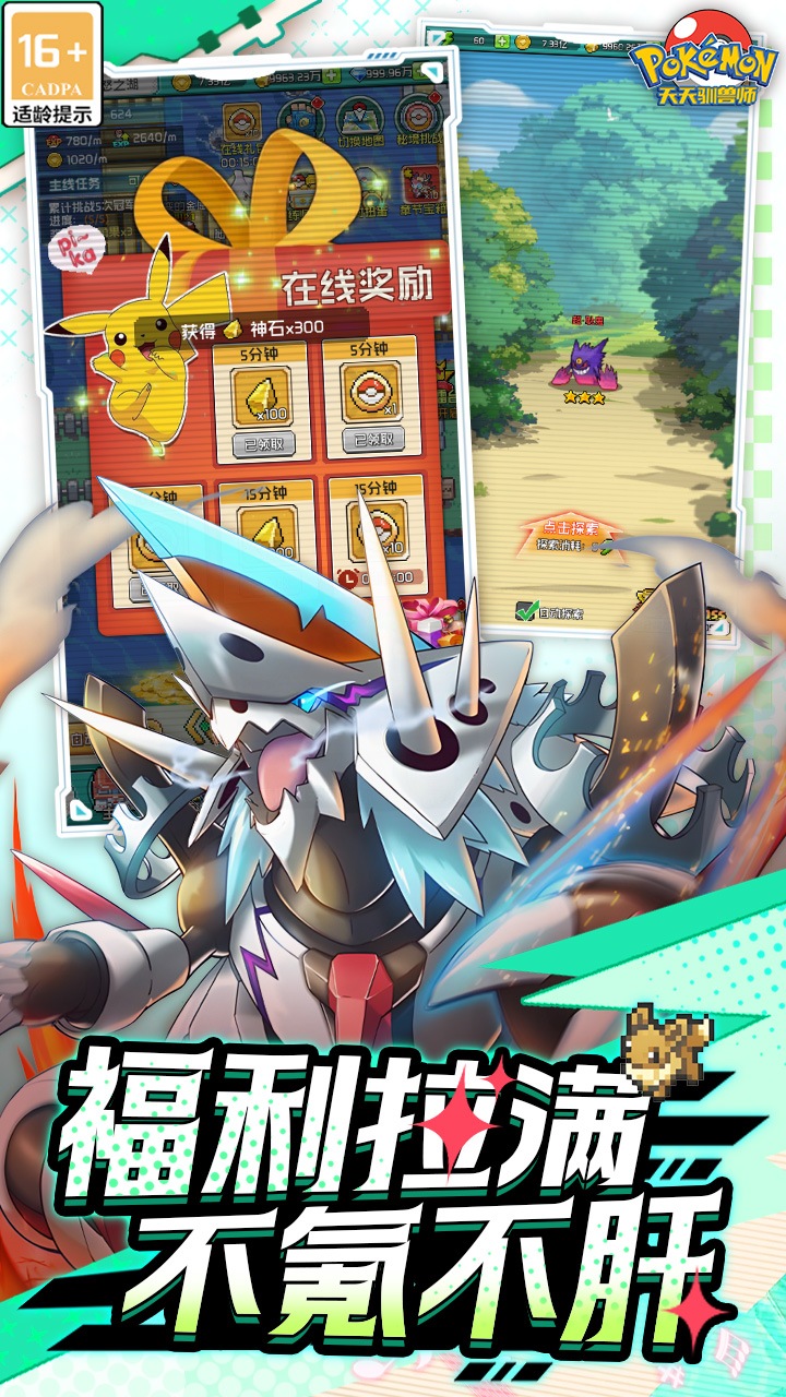《天天驯兽师》是一款拥有着独特画风,不氪金不氪肝也可以轻松获得极致游戏体验的回合类宝可梦养成策略手游。【经典】守护童年,目标是宝可梦大师!经典复刻,1:1还原真实的口袋世界!【培养】回合制限四招对战玩法,精灵mega进化、极巨化、神兽融合、限时狩猎等创新玩法。【冒险】精美特效全屏对战一触即发!加入精灵的世界,化身精灵训练师开启冒险!【收集】探索八大主题道馆、精灵联盟等经典场景,捕获全时代精灵【巅峰】联盟锦标赛对决,赢取八大师冠军头衔,热血冒险多种玩法等你来体验!