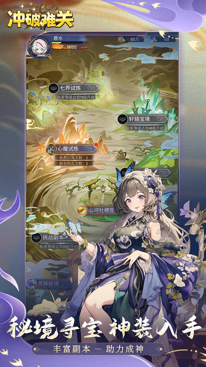 充值比例1元:10妖晶;当金箍棒划破苍穹,当莲台缀满星尘,一段湮没于古籍的西游秘辛悄然苏醒……《冲破难关》以水墨浸染的东方画卷,重绘三界众生。你将漫步于蟠桃仙林,驻足于幽冥忘川,邂逅那些熟悉又陌生的身影——执念入骨的金蝉子,踏碎虚空的六耳,垂眸浅笑的观音……指尖轻触,仙法交织;阵法变幻,因果轮回。无需奔波劳顿,自有云海托起修为;不拘俗世纷扰,只在此间静观潮生。愿君在此,寻回一缕遗落云端的禅意。