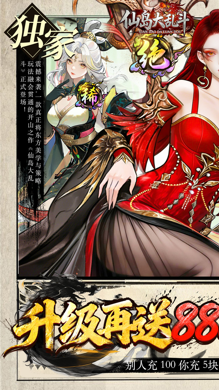 震撼来袭!一款真正将东方美学与策略玩法融会贯通的开山之作——《仙岛大乱斗》正式登场!游戏深度构建一个波澜壮阔的史诗级修仙世界,同时将千年山水画风的美学精髓注入每一寸画面,以匠心独运的视觉语言,为玩家呈现一幅会呼吸的水墨丹青长卷。在这里,您不仅能沉浸于唯美飘逸的山水画卷,更能体验到策略与激情的极致碰撞!游戏独创性地将深度策略布阵与酣畅淋漓的回合制对战完美融合,每一步部署都将左右战局,每一次出手皆可逆转乾坤。仙途漫漫,机关算尽,运筹帷幄之间,决胜千里之外。无论是钟情于修仙文化的您,还是追求策略挑战的您,都能在《仙岛大乱斗》中找到属于自己的修真之道。即刻启程,执笔山河,开启您独一无二的飞升之旅!