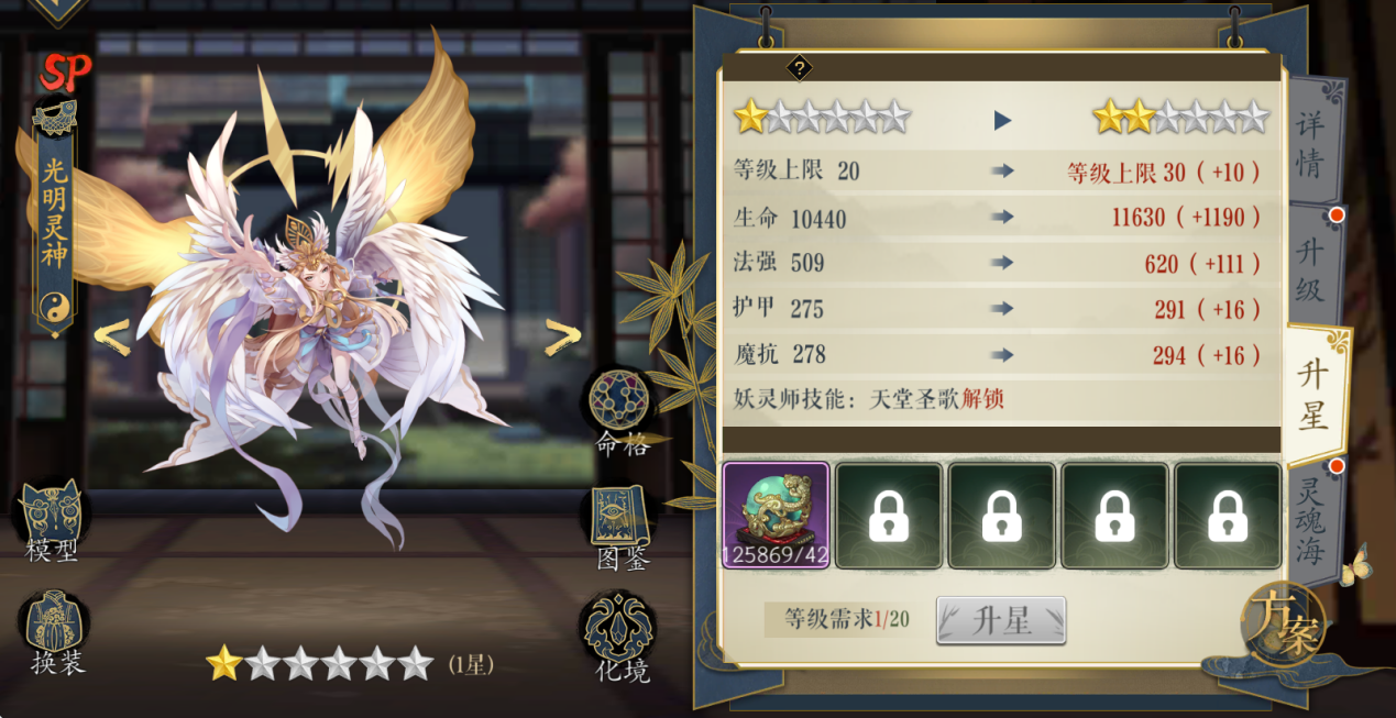 通过消耗无相灵丹,即可使已经达到等级上限的妖灵师突破等级上限哦~升星后的妖灵师不仅可以提供更多的属性,还会解锁新的技能哦~