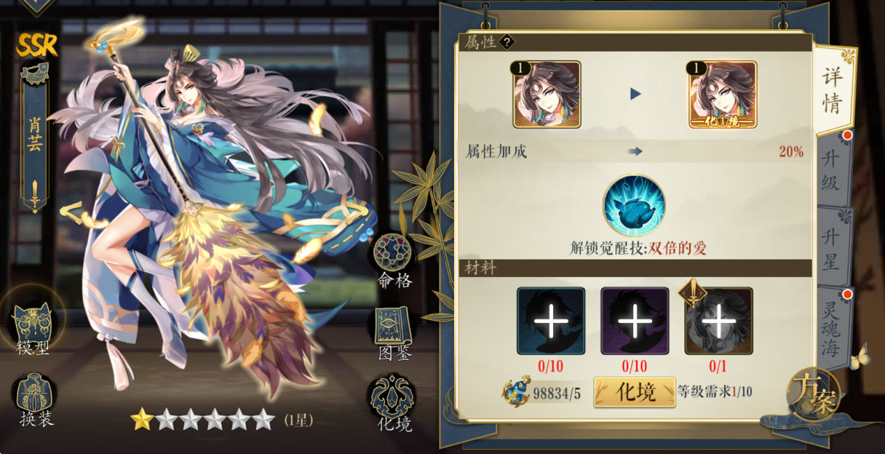 妖灵师通过化境可以解锁觉醒技,并且可以通过化境提升被动技能的等级哦~每次化境还会提升巨量属性。努力收集梦魇妖壶提升妖灵师的化境等阶吧。
