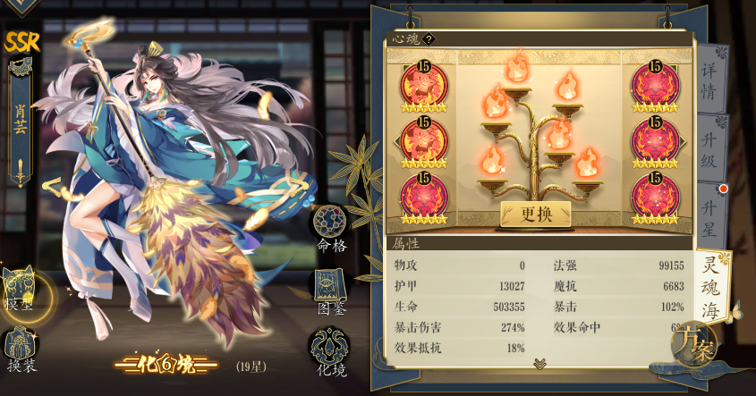 获取到的妖灵师可以在游戏下方进入妖灵师的养成界面。妖灵师的养成一共分为6个环节。