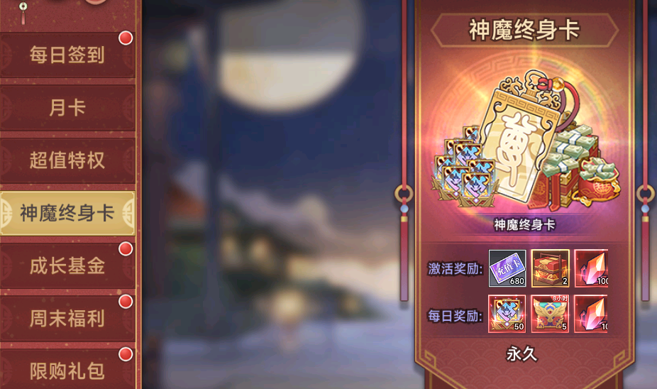 活动时间:永久单日累充20000元(实付200元):升星石*750,强化石*750,锻造石*750,金币*500万单日累充50000元(实付500元):升星石*