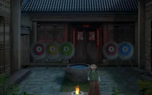 1、第一章诡院先看一下箱子的密码,提示是人头——纸人,花圈,马,小房子,注意这个小房子是有一个门和一个窗子的,所以我们观察纸房子时候找一下只有2楼的左右两边和3楼的右边满足,所以房子是3,然后数一下纸人8或9个,花圈3个,马1个,所以密码为8313或者9313,最后试一下是8313,打开拿到一张八卦卷轴和第二块八卦牌。