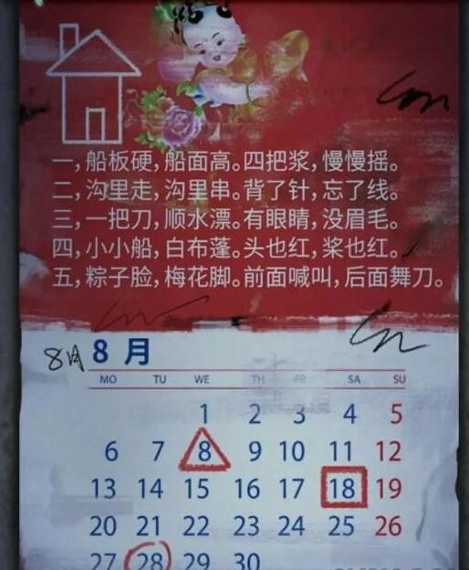7、出门到院子,把米糕交给女童后水缸能靠近了,看来后面要用水啊,正面的房子也能进入了,进去看一眼是仓库。先查看一下纸人右边的木板,提示要一物换一物,查看纸人手里的托盘不让取墨块,那么我们把木炭放在托盘里就能拿走墨块了,右边的日历上线索比较多,首先是上面的解谜这个我们后续结合线索看,数字能看到三角形=8,正方形=18,圆形=28记下来。