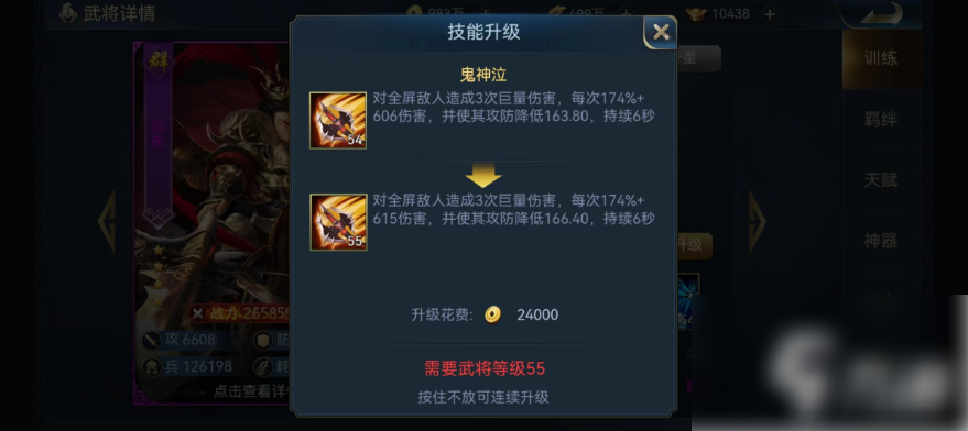 在选择队伍的核心主力方面,前期就要下定决心,因为投入的资源一旦浪费就会落后于其他玩家,而吕布作为首充赠送的顶级武将,无论从技能还是属性等各个方面都有很强的优势。首先来看一下吕布的技能,开启技能鬼神泣之后,对全屏所有敌人造成三次巨额伤害,每次输出都能使伤害目标的攻防属性降低,降低了属性之后不仅削弱了对方输出,也使得我方其他武将的攻击能够打出更高的伤害。