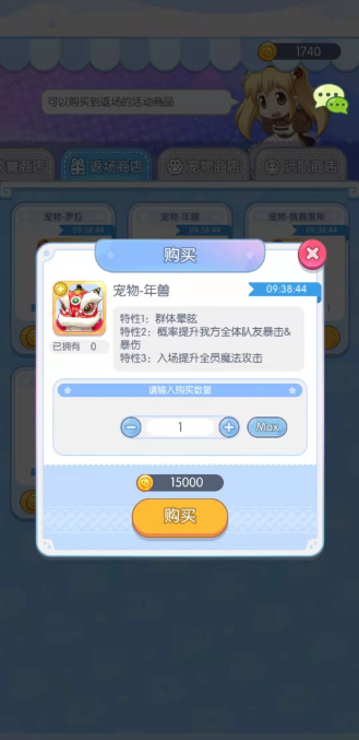 罗拉这个宠物适合控制属性多的阵容,因为一旦打出眩晕,额外伤害也是很可观的,并且在对抗一些血量比较高的怪物或是对手的时候,血量百分比的伤害也能增加不少输出。年兽的第一个特性是造成群体眩晕,第二个特性是有几率提升己方全体伙伴的暴击几率,第三个特性是在开场就能把提升全员的魔法攻击。