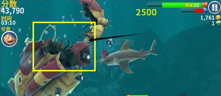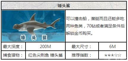 锤头鲨鱼是我们完成该任务的最佳的选择,可以撞击船只和潜艇,当我们将锤头鲨升级到了10级别之后,我们就可以顶住潜艇的4下攻击了,这对于我们完成任务,摧毁潜艇有着不小的优势,一般的情况下,玩家们只能够坚持被攻击2次就玩完了。
