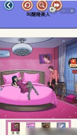 6、点击右下角的滋水枪,将其放在美女身上就可以将美女叫醒。