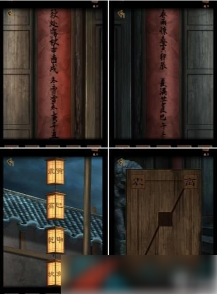 1、首先移动石狮子,根据门上对联和门边灯笼得到立春寅震、立夏巳离、立秋申乾、立冬亥坎线索;