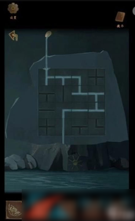 15、等到梅花开,开启下面的密码锁,左54,右36获得另一半圆盘,倒流瀑布用青铜锤杖敲碎放入圆盘即可通关;