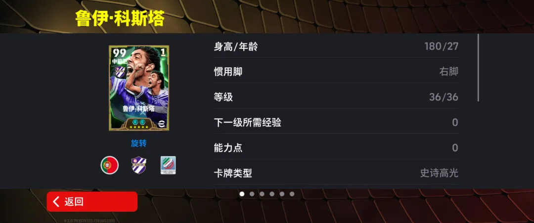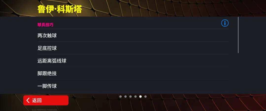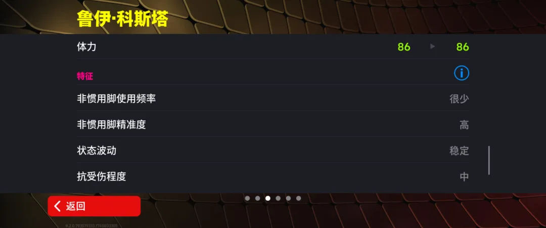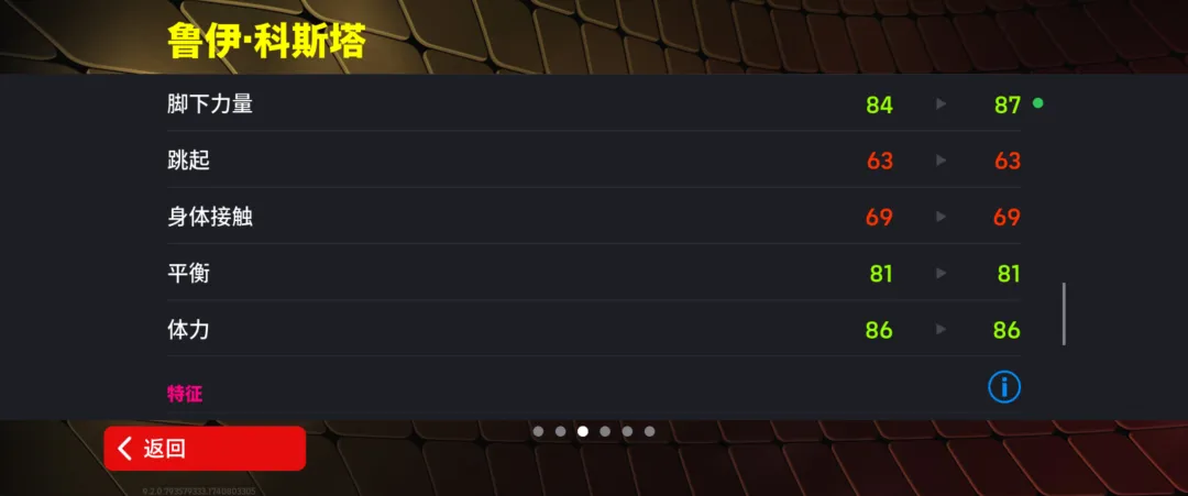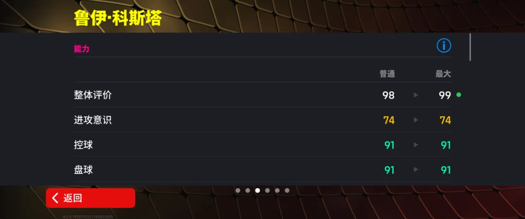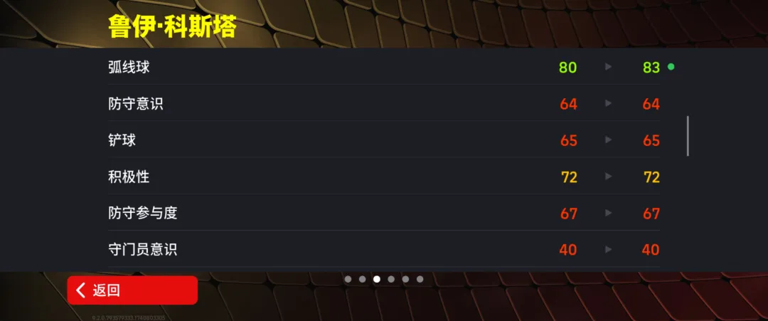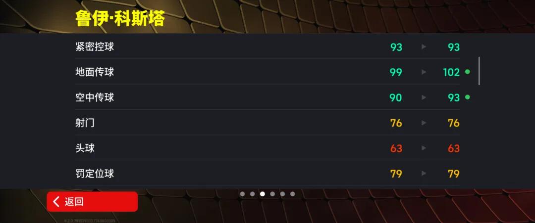 科斯塔增能属性为【传球 +2】
