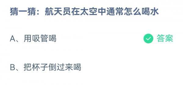 2022支付宝蚂蚁庄园11月11日的题目已经更新了,今天的题目为:猜一猜航天员在太空中通常怎么喝水?用吸管喝还是把杯子倒过来喝呢?正确答案是什么,可能很多小伙伴可能还不太清楚。下面小编就为大家带来了正确答案分享,希望能帮助到你。