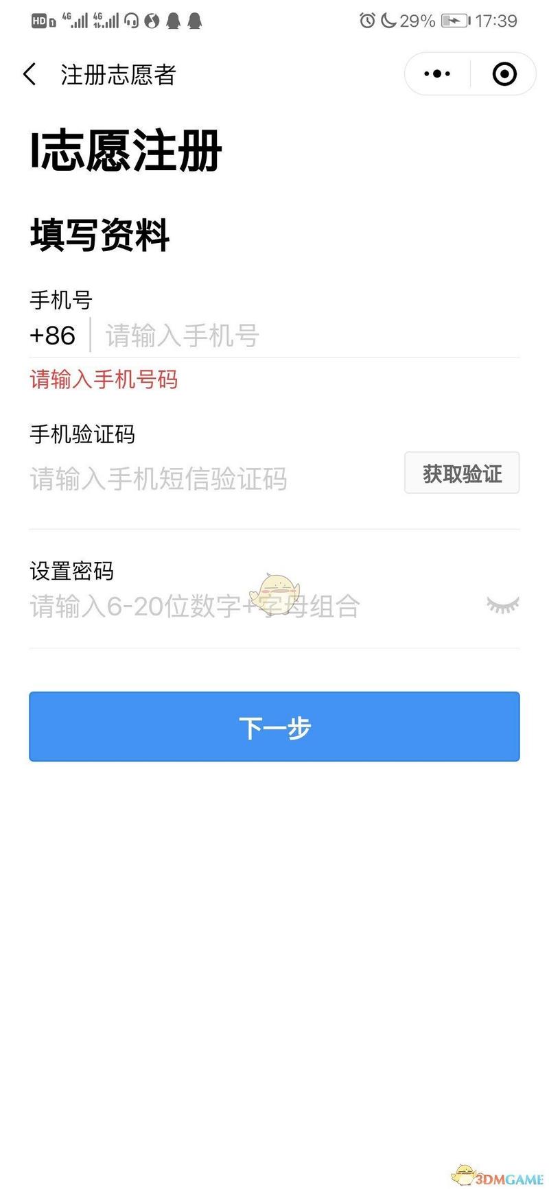 4、如果没有注册成为志愿者,系统将自动弹出注册志愿者界面,需要先绑定手机号进行注册,如果已经注册过的小伙伴,按照系统提示如实完善个人信息即可。