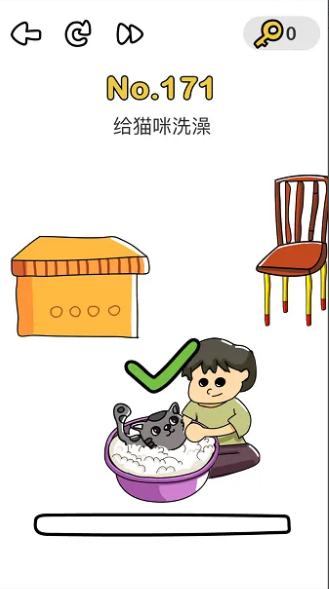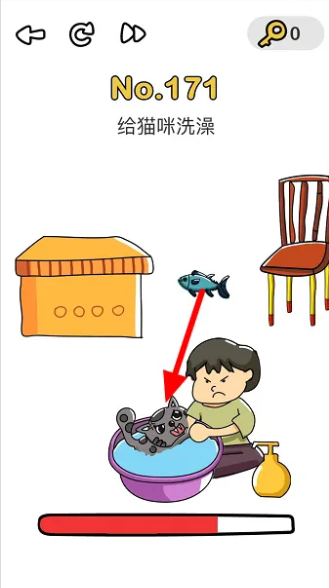 脑洞大师171关要求给猫咪洗澡,很多人一时半会想不出来答案,总也过不了关,下面来分享下:脑洞大师171关给猫咪洗澡怎么过?