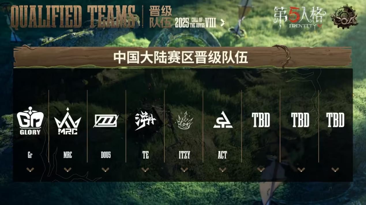 经过本周的激烈角逐,DOU5战队、TE战队、ITZY战队和ACT战队顺利晋级深渊的呼唤VIII全球总决赛。下图为本周晋级情况: