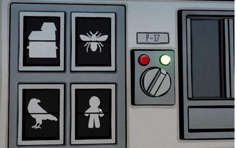4、将视角拖动到左侧,装上开关,打开开关,根据过去右2房间上的画顺序拨动机关,获得对过去的提示