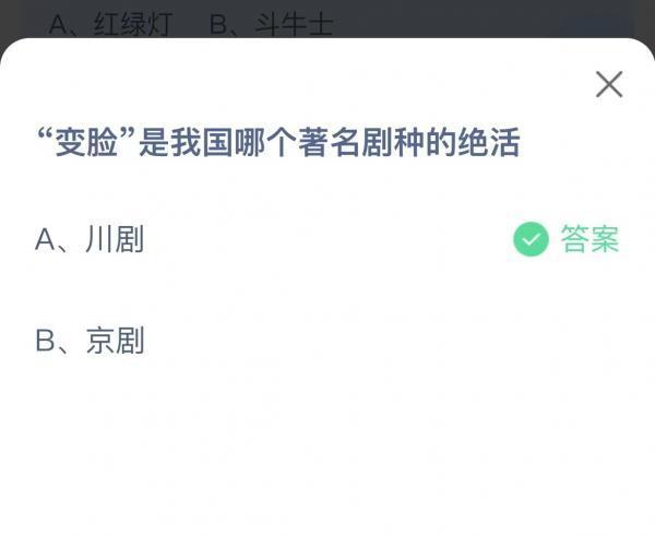 2022支付宝蚂蚁庄园11月4日的题目已经更新了,今天的题目为:变脸是我国哪个著名剧种的绝活?川剧还是京剧呢?正确答案是什么,可能很多小伙伴可能还不太清楚。下面小编就为大家带来了正确答案分享,希望能帮助到你。